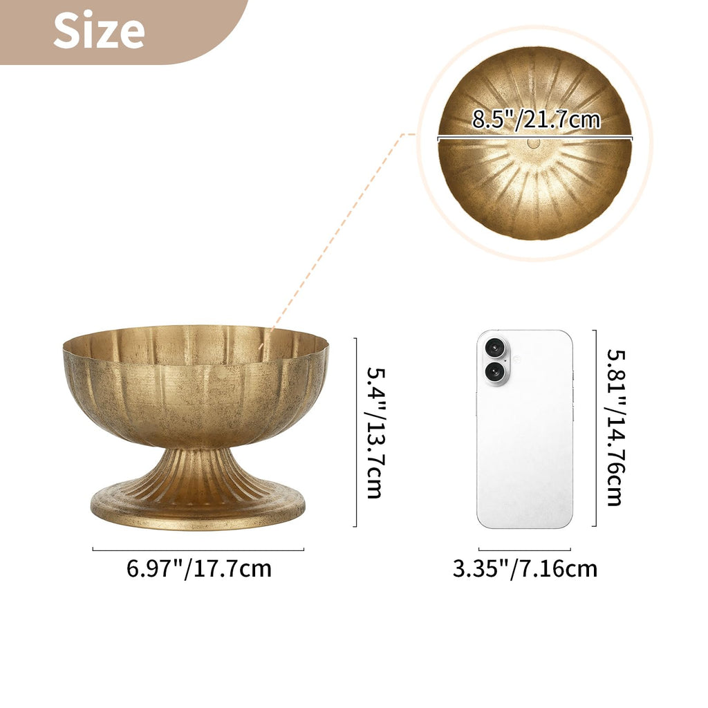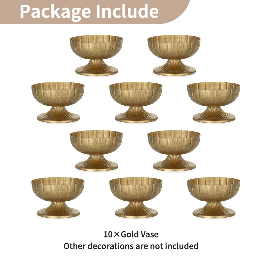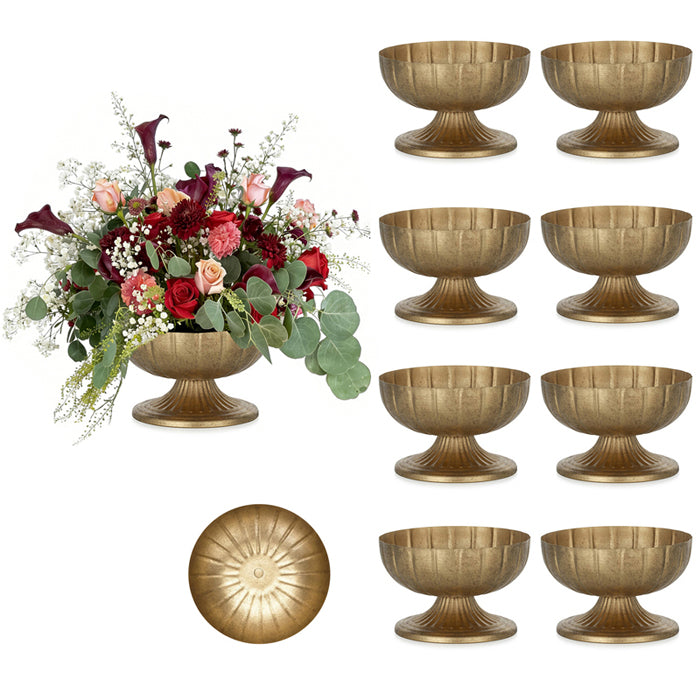 Distressed Gold Metal Compote Bowl Decorative - 7" Wide Brass Pedestal Vase,2pcs/10pcs