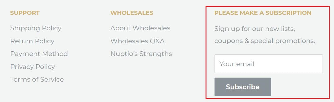1. Nuptio is privileged to have your subscription. The Subscribe section is shown at the Web Navigations at page bottom, as below: