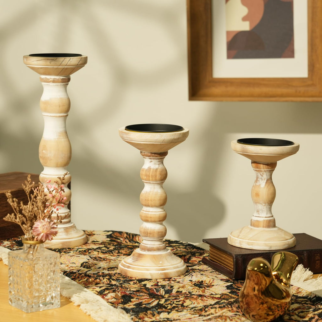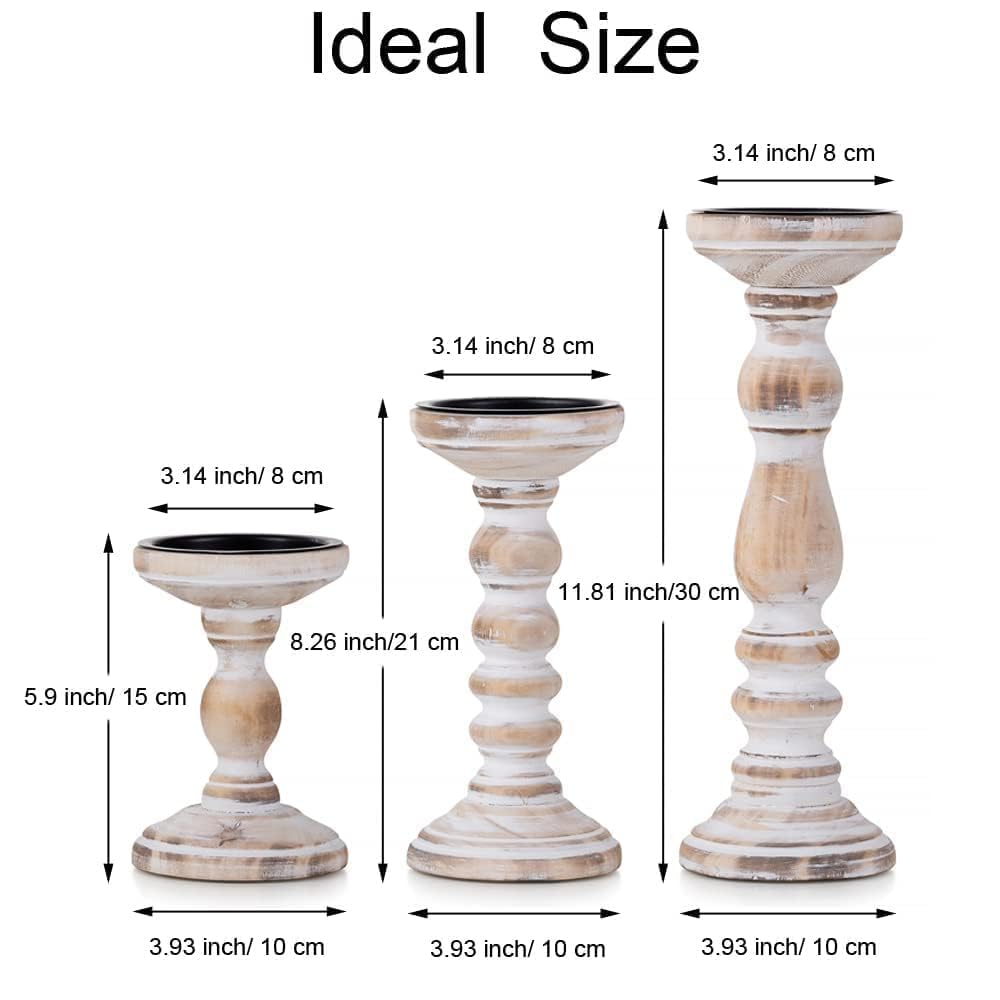 Farmhouse Wood Candle Holders for Pillar Candles, Rustic Wooden Pillar Candles Holder Set of 3